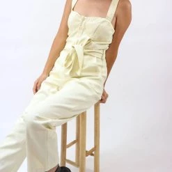 Wholesale ๐ฅฐ Fore ๐ฉ women Easy Go Button Front Straight Leg Belted Jumpsuit in Cream ๐