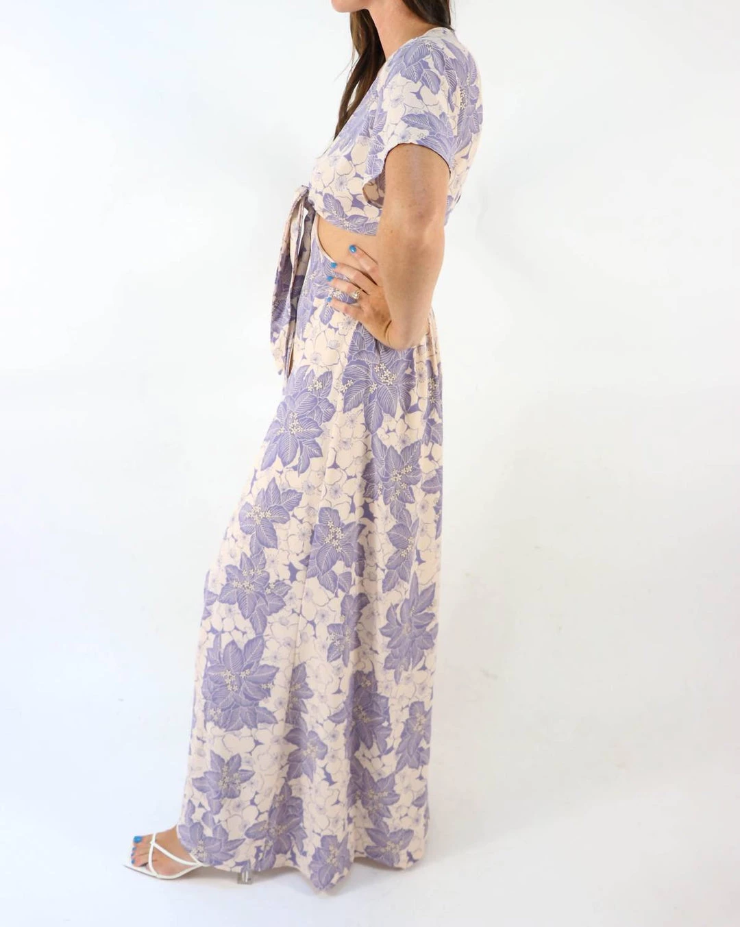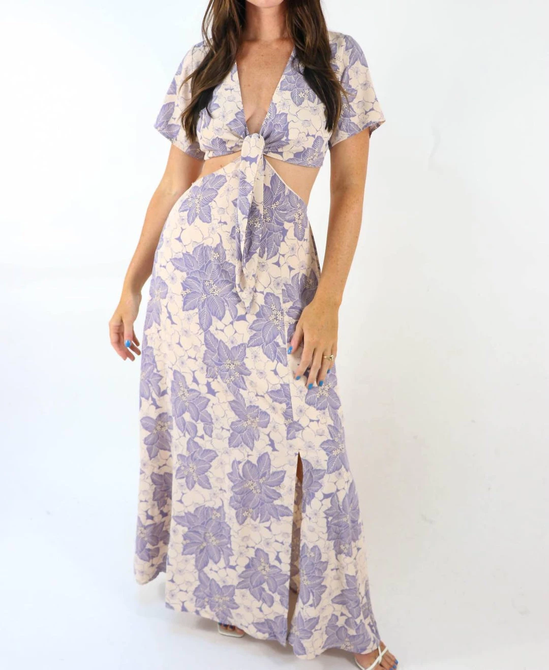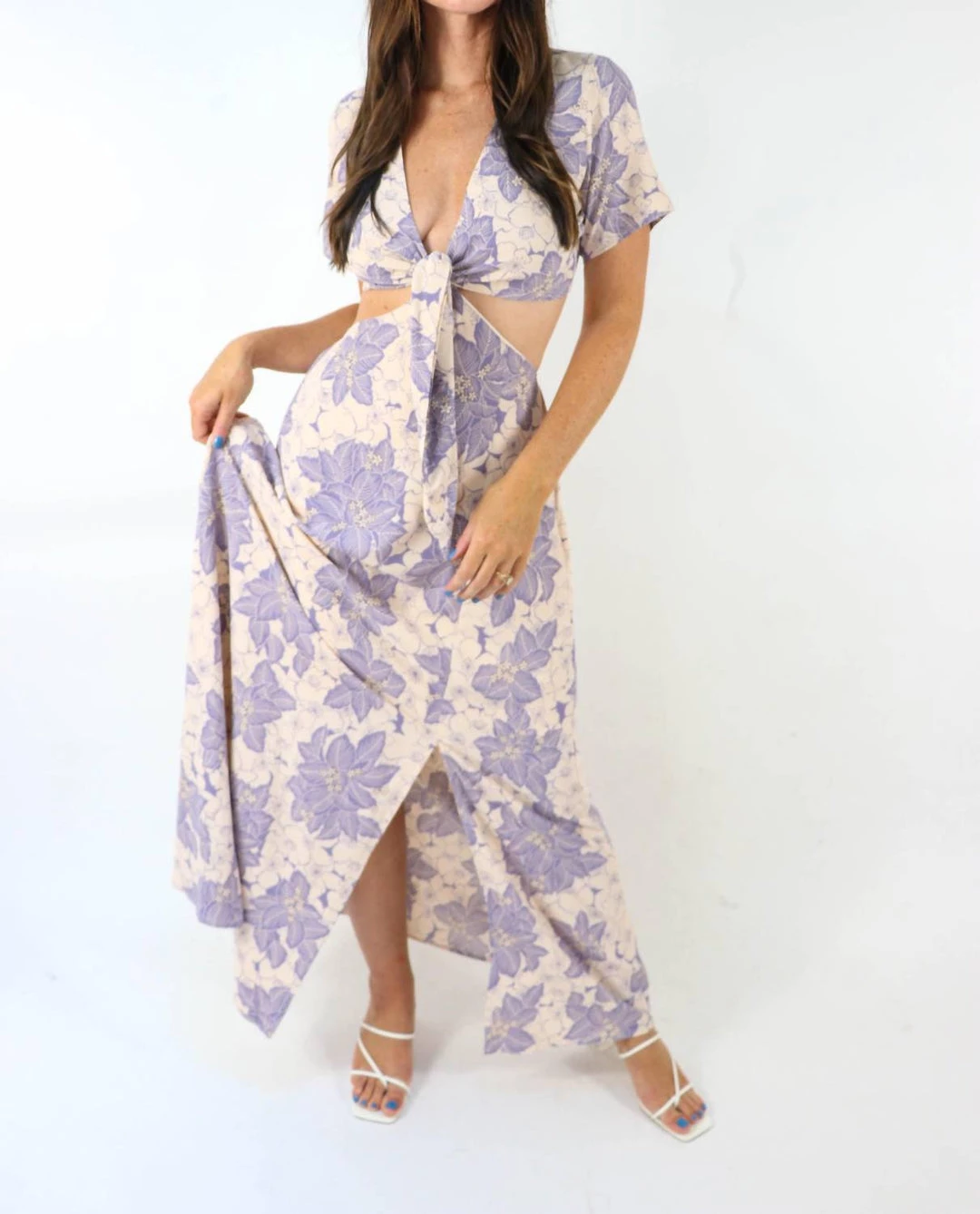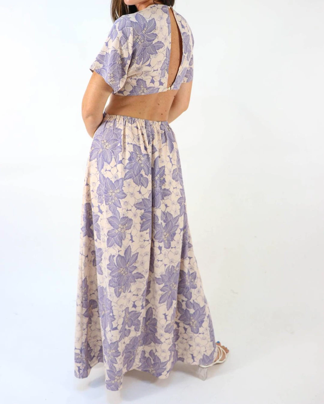 New ๐ Fore ๐ฉ women Exploring Gardens Floral Cutout Short Sleeve Cocktail Maxi ๐ Dress in Purple Multi โ๏ธ