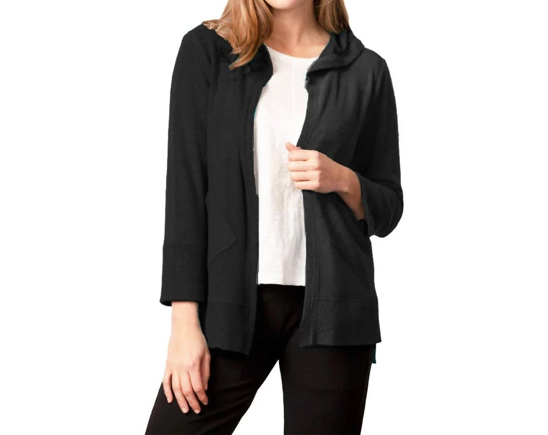 Super soft fleece cardigan. Feels like a big hug.-Rib trim-Hooded open front cardigan-Patch pockets