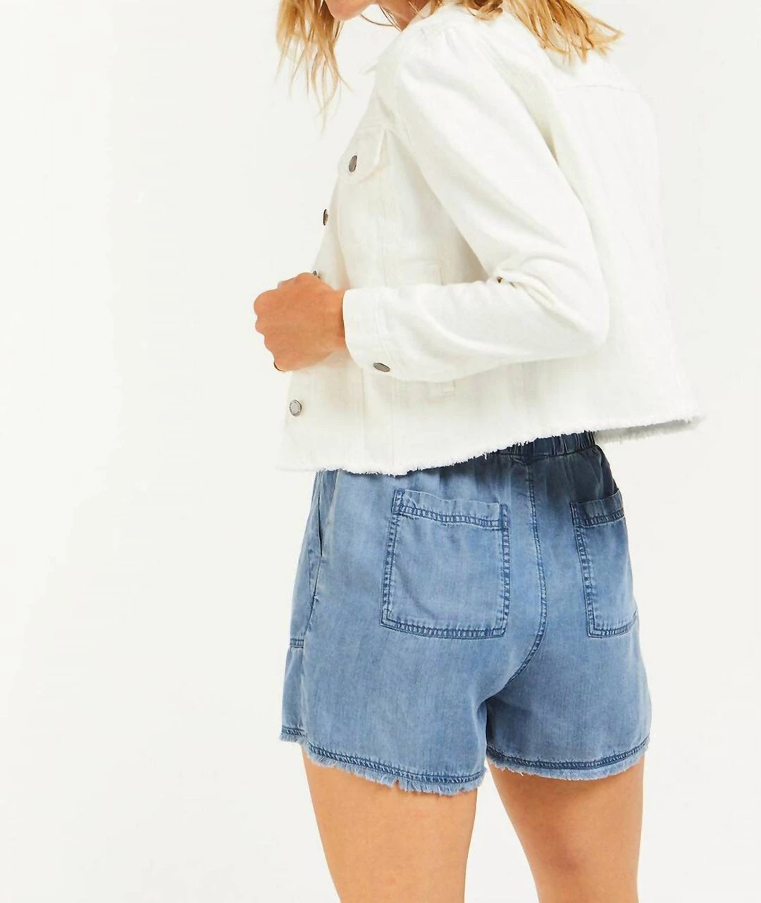 Classic long sleeve denim jacketThis jacket features basic collar, front flap chest pockets, button-up at front, tack buttons, and a cropped fray hemCare –  Machine wash, cold. Tumble or hang to dryÂ
