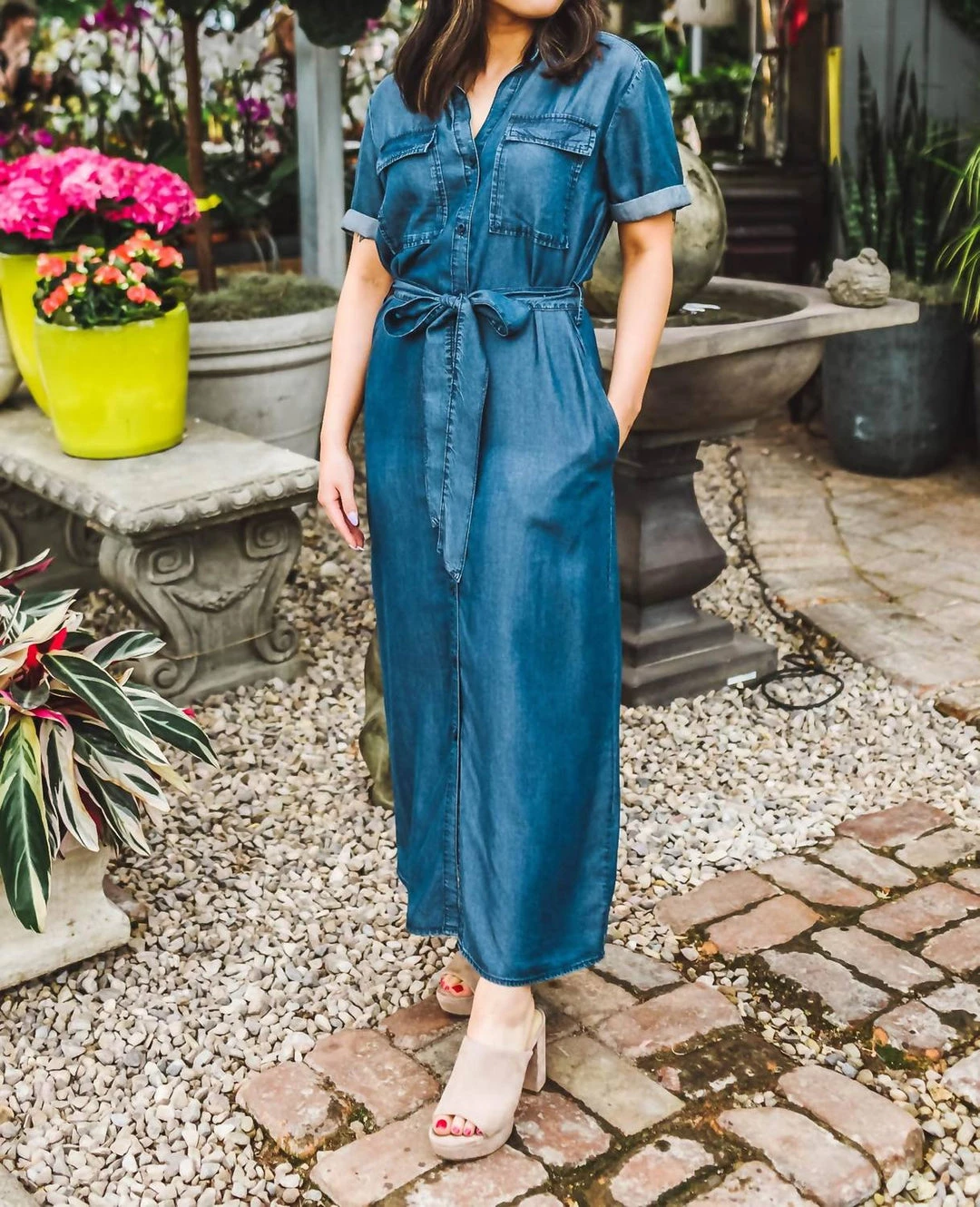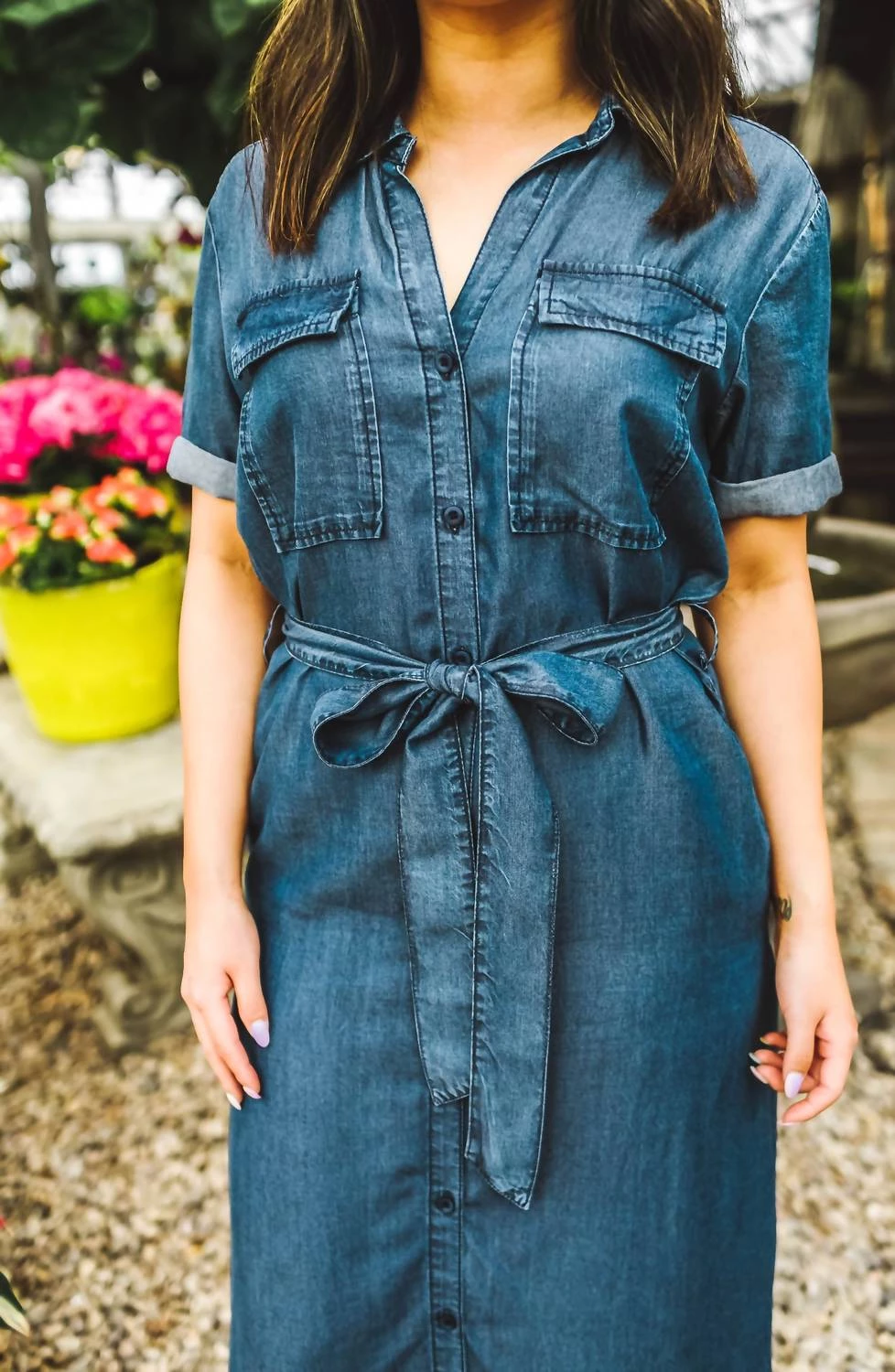 Details – Ultra soft 100% tencel fabricV-necklineButton closureRolled cap sleevesTie waistband closureFront pocket detailsPerfect for the office or the weekendModel details – Height – 5’1″Bust – 34″Waist – 26″Hips – 36″Wearing size SCare Instructions – Machine wash coldΓΒ Wash with like colorsDo not bleachDry flat or tumble dry low heatCool iron if neededΓΒ