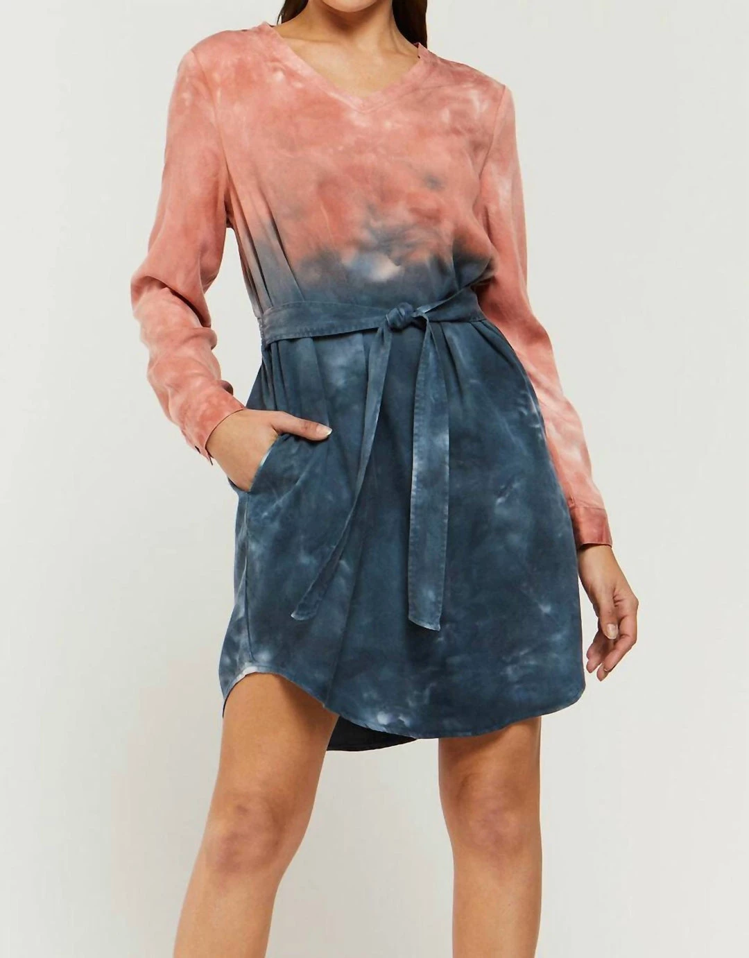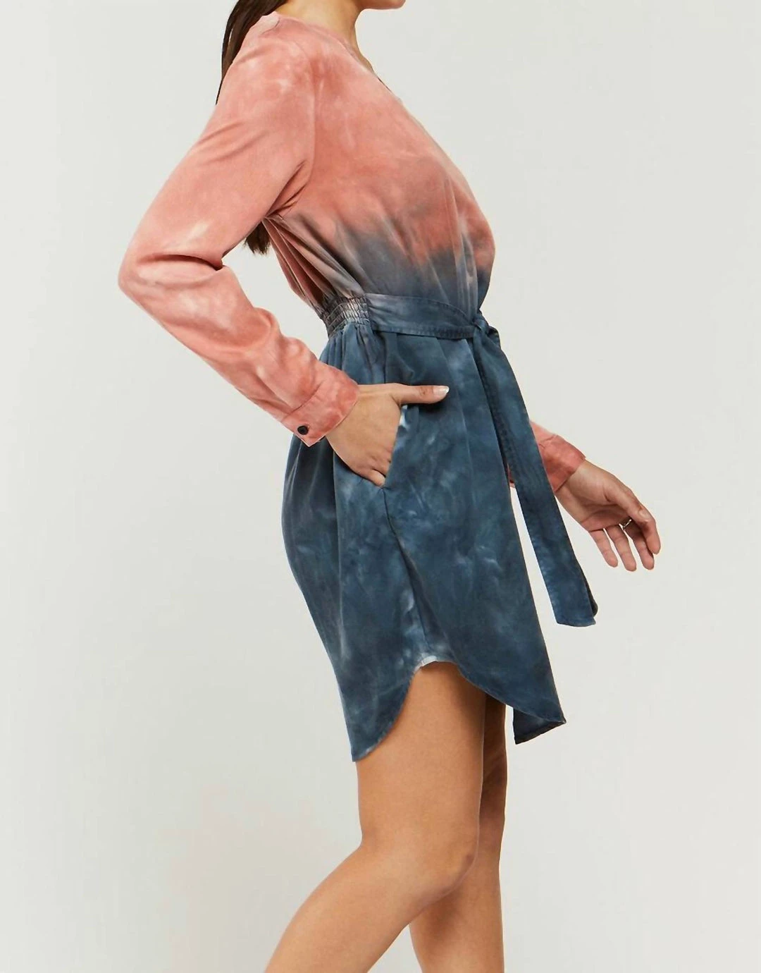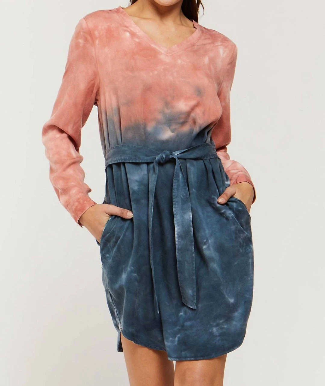 A soft and lightweight tie dye dress made from TencelΓ’βΒ’ a versatile day-to-night style.ΓΒ ΓΒ This long sleeve dress features v-neckline, buttoned cuffs, gathered elastic waist,ΓΒ tie belt at waist,ΓΒ high low hem, and tie dye all around.Shirt dress styleRelaxed fitLong sleevesSelf beltRuched waist detail on the backΓΒ V-necklineSide pocketsHigh-low hem100%ΓΒ TENCELΓ’βΒ’ lyocellMachine wash cold