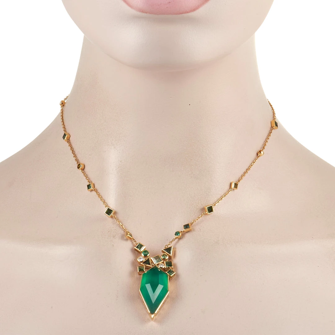 Brand new ๐ฏ women Stephen Webster 18K Yellow Gold 0.30 ct Diamond, Tourmaline and Green Agate Crystal Haze Necklace ๐ฅฐ