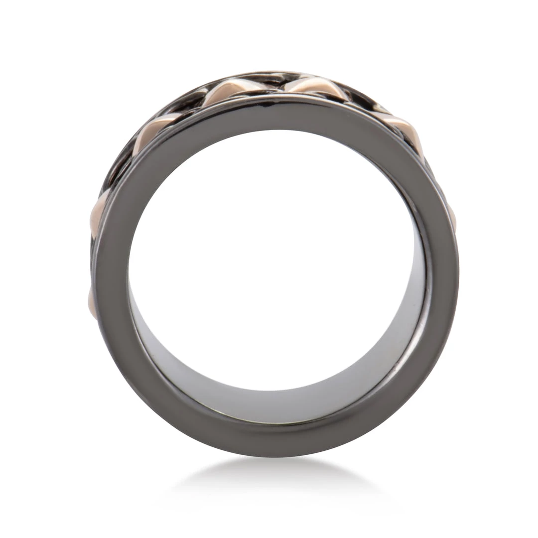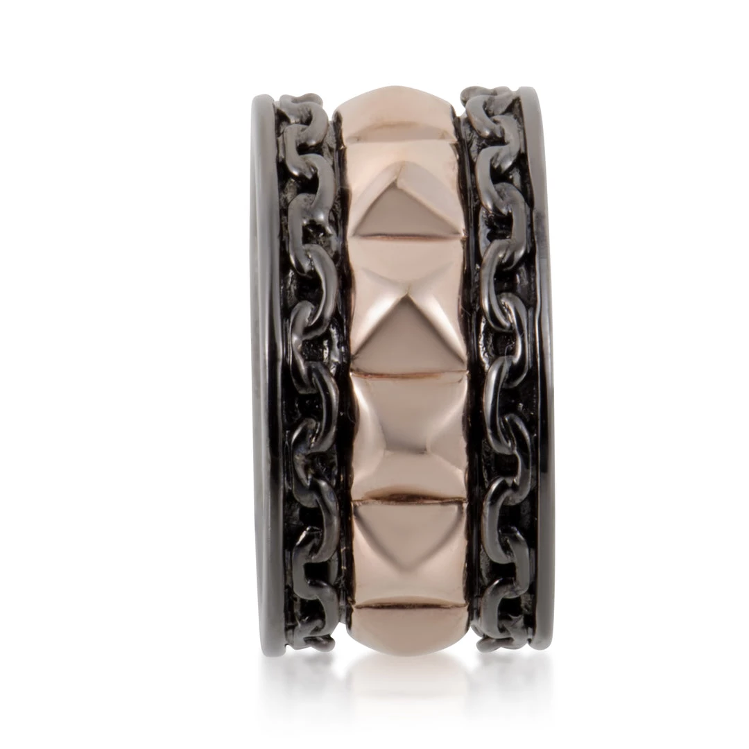 Brilliantly boasting compelling chains of lustrous black rhodium-plated silver on either sides of the fascinating pyramidal shapes that are crafted in beautiful rose gold, this glamorously astounding band from Stephen Webster is yet another sublime item from the stunning ‘Alchemy in the UK’ collection that charmingly features a splendidly elegant design and offers an alluringly refined appearance.