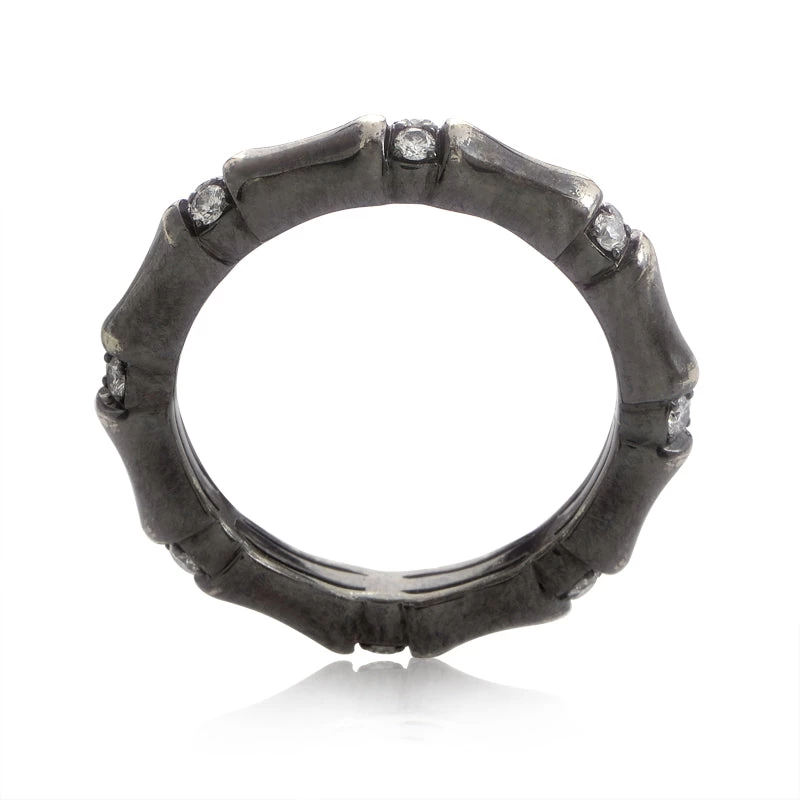 A new take on a classic design, this band ring from Stephen Webster’s Bones collections exudes edge. The ring is made of rhodium-treated 18K white gold and is set with ~.35ct of diamonds.