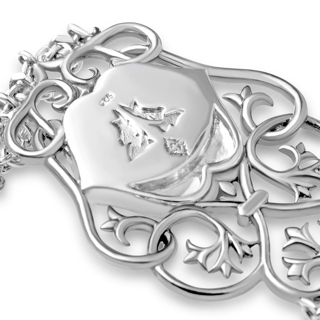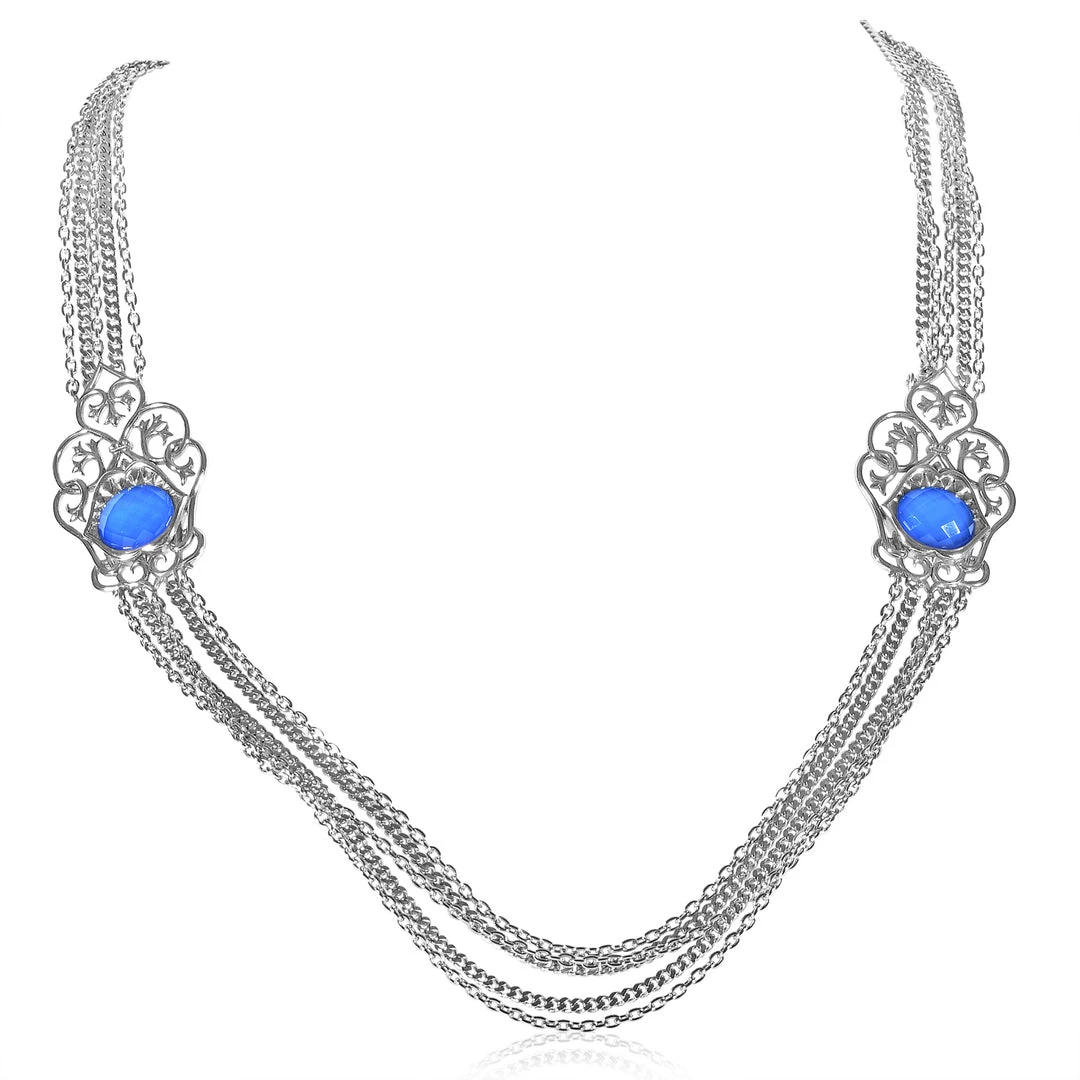 This necklace from Stephen Webster is a perfect example of the unique designs found in Les Dents de la Mer collection. The necklace is made of sterling silver and boasts two accents set with blue agate and clear quartz.