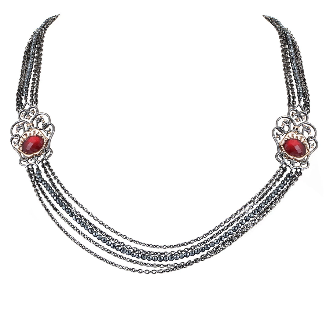 Boasting a strong aura of vintage beauty and classic luxury, this exquisite addition to the Les Dents de la Mer collection from Stephen Webster is a truly majestic sight to behold, with the magnificent silver and its gorgeous filigree ornamentation complemented by the eye-catching and spellbinding red quartz stones weighing in total 20.30 carats.<br/>Charm Dimensions – 2.25″ x 1.5″