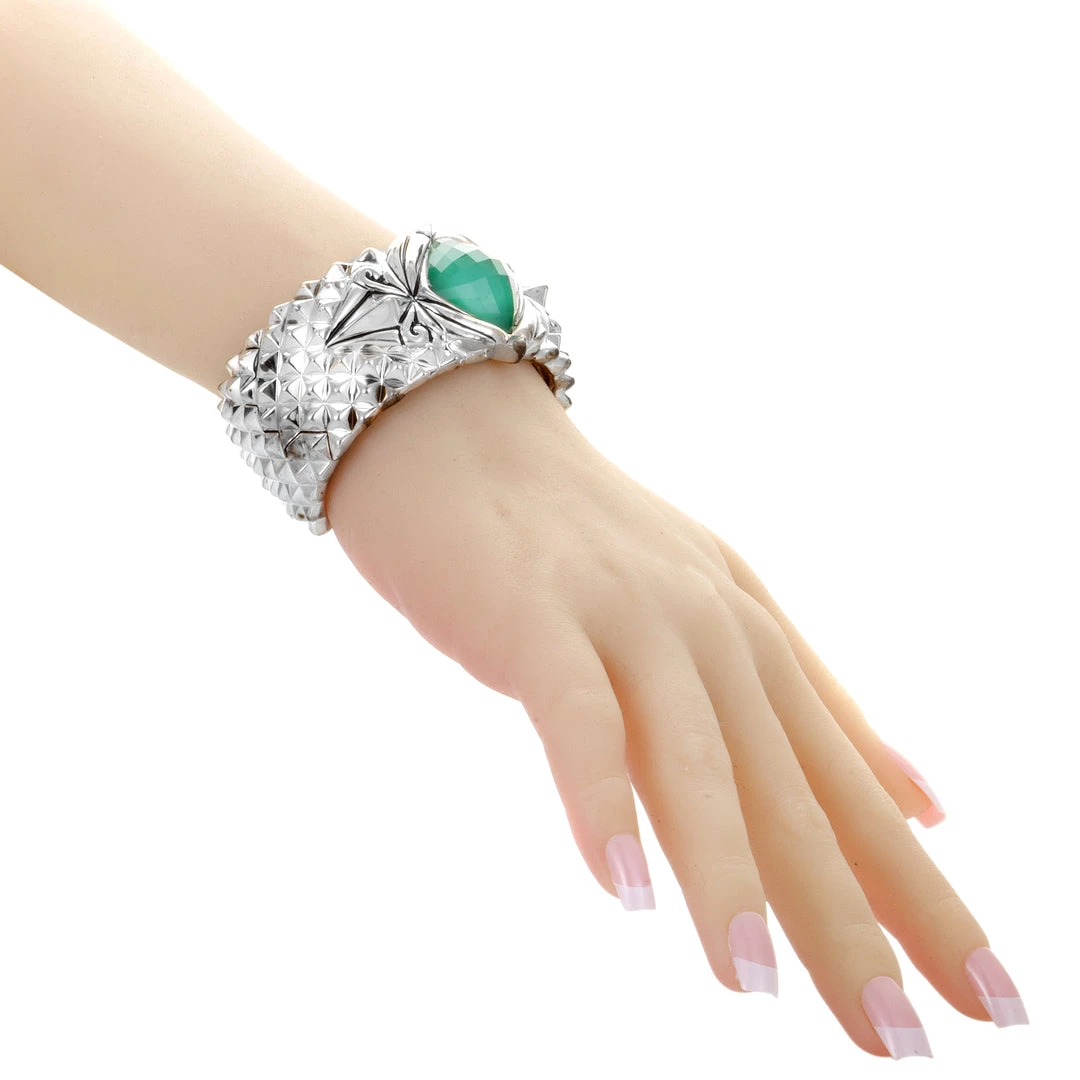 The vivacious color of the synthesized chrysoprase stone breathes exuberant life into this exceptional bracelet from Stephen Webster which is made of gleaming silver and also boasts a quartz stone while offering a memorable sight.